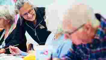 "Hier geen maskers en doen alsof. Dat maakt de contacten zo waardevol”, vertelt Lot. Zij is sinds vorig jaar vrijwilliger bij dagbesteding Eigenhandig van Zideris voor mensen met een verstandelijke beperking. Gezelligheid, creativiteit en vlijt gaan hand in hand. Na haar verhuizing uit de Randstad was Lot op zoek naar nieuwe contacten. Zij wilde zich nuttig voelen en houdt ervan kunstzinnig bezig te zijn. Vandaar haar keuze om bij Zideris vrijwilliger te worden.