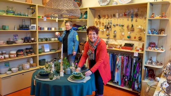 Jenny staat samen met een andere vrijwilliger elke woensdagmiddag in de verkoop. Ze helpt klanten bij het uitzoeken van een origineel cadeau. “Het is leuk iemand anders te helpen bij het uitzoeken. Iedereen heeft natuurlijk weer wat anders in zijn hoofd. Dan is het een leuke uitdaging om samen iets te vinden. Er worden twee mensen blij van een aankoop in de Wereldwinkel. Diegene die het cadeau krijgt en degene die het heeft gemaakt. Als iemand Tunesisch aardewerk, gerecyclede leren tassen of vilten oorwarmers uit Nepal koopt, weet ik dat het geld goed terecht komt.” Met dat in haar achterhoofd staat Jenny met een tevreden gevoel in de winkel. Jenny zegt: “Als je het fijn vindt om klanten te helpen, is het al goed. De rest leer je vanzelf als je in de winkel staat. De sfeer is ontspannen. En mocht je iets niet weten: je staat altijd samen in de winkel.”