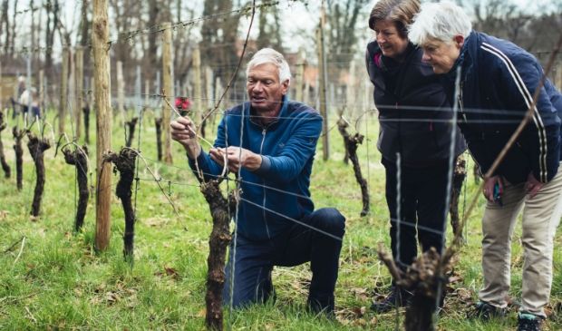 Ton heeft de leiding over de teeltploeg. Zelf is hij opgegroeid op een tuinbouwbedrijf. Hij was al dus vroeg in de weer met allerlei planten. Inmiddels is hij dertien jaar actief bij de teeltploeg op het Wijngoed. Ton: “Een tomaat of een komkommer is niet verschillend van een wijnstok. Ik weet hoe planten reageren als je bepaalde handelingen uitvoert. Daar zit meestal niet veel verschil in. De kennis die ik heb, probeer ik mee te geven aan andere vrijwilligers. Je wilt graag dat de wijngaard er mooi egaal bij staat. Dat maakt ons allemaal heel tevreden.”